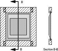 True frame and panel construction: The panel is a solid wood piece, fitted into grooves on the inside of a joined wooden frame. The panel may be (and usually is) shaped thinner at the edges and is often covered with carved or pierce work decoration. The corners of the frame are joined with mortise and tenon joints (a rectangular projection on the ends, cut with the grain, tightly fitted into a rectangular hole cut across the grain, and held by pegs and glue). The result is strong, light, and allows solid wood in frame and panels to expand and contract without damage to the piece. Historical pieces made in this manner have lasted for centuries, with no damage caused by the expansion or contraction of the wood as the humidity changes. Section view B-B is a cross-section through the thickness of the piece. |