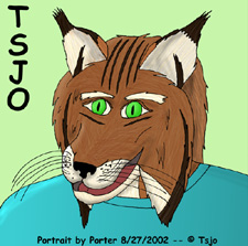 I frequently participate in several on-line forums as 'Porter', and I use that name as my signature for my artwork. I do a variety of art forms, including mechanical drafting, photography, and calligraphy and illumination. In late March of 2002, I decided to try my hand at cartooning and caricature, with a focus on 'Furry' subjects - anthropomorphic animals. Most of what you will see in this gallery is work that I have done in this style, drawing and inking the pictures by hand, and then scanning them and coloring them on my computer.