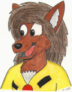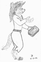 Color sketch - Carbon pencils and colored pencils, inked line art. My first attempt at a color picture of Florence, using traditional media rather than computer coloring. I looked at several comic panels of Florence, while trying to create this portrait. I am not quite satisfied with the fur and hair colors, but I had a limited range of supplies available on my trip. Otherwise, I think I did pretty well with this one. Full size image is 8.3 in x 10.6 in, 259K, 72 DPI |