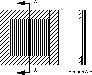 Simulated frame and panel construction: This method is used on some inexpensive furniture to get the appearance of more expensive construction techniques. This method may be acceptable for furniture that is not expected to last a long time, or which will be protected from the weather and from changes in humidity. The "panel" is actually a plywood sheet the full size of the piece, while the butt-jointed "frame" is applied to the panel's surface with glue and/or nails. The "panel" must perforce be flat within the "frame", unless a raised decorative area is glued or nailed to the surface of the panel. If the panel and the frame are both done in solid wood, expansion and contraction with changes in humidity will eventually damage it. Section view A-A is a cross-section through the thickness of the piece. |