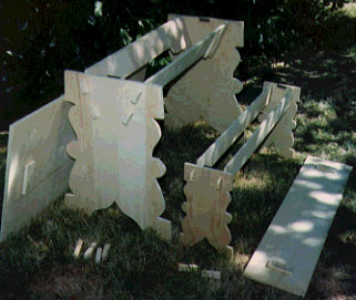long x 18" high benches. (Seats four adults, two