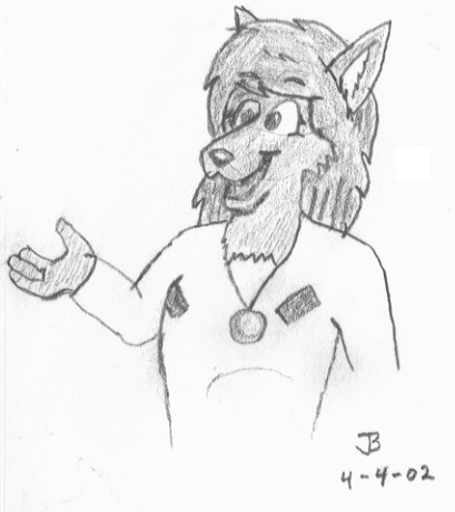 Color sketch - Carbon pencils and colored pencils, inked line art. My first attempt at a color picture of Florence, using traditional media rather than computer coloring. I looked at several comic panels of Florence, while trying to create this portrait. I am not quite satisfied with the fur and hair colors, but I had a limited range of supplies available on my trip. Otherwise, I think I did pretty well with this one. Full size image is 8.3 in x 10.6 in, 259K, 72 DPI |